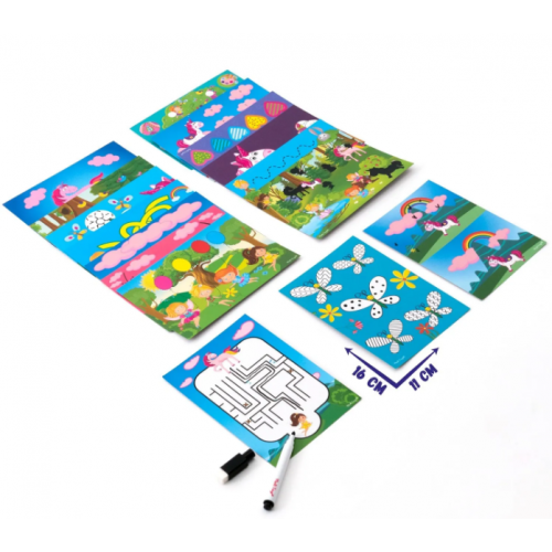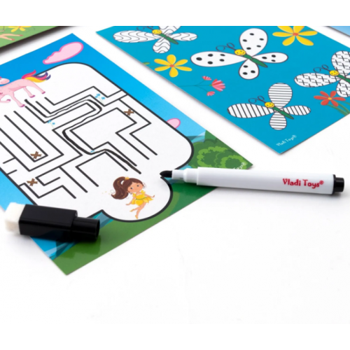 Перетворіть навчання на гру! Обирайте картку, виконуйте завдання маркером, що легко стирається, і розвивайте увагу, логіку, інтелект і пам’ять.
