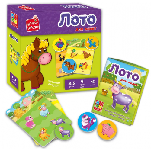 Лото "Тваринки ферми" – це захоплива гра для малюків, яка допоможе їм познайомитися з мешканцями ферми у цікавій та інтерактивній формі.