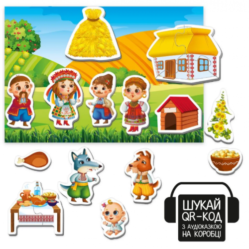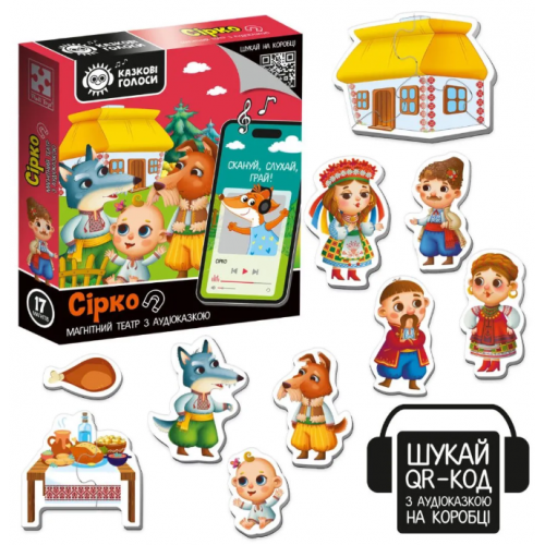 Театр і казка в одній коробці! Серія "Казкові голоси" — це магнітний театр з аудіоказкою для малюків від 3 до 6 років. У комплекті 15 яскравих магнітів і поле для гри, де дитина зможе створювати казкові вистави. Відкрийте коробку, відскануйте QR-код, і слухайте аудіоказку разом з малюком, розігруючи сцени на магнітному полі. Ідеальний спосіб поєднати слухові та творчі навички!