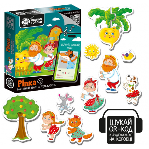 Театр і казка в одній коробці! Серія "Казкові голоси" — це магнітний театр з аудіоказкою для малюків від 3 до 6 років. У комплекті 15 яскравих магнітів і поле для гри, де дитина зможе створювати казкові вистави. Відкрийте коробку, відскануйте QR-код, і слухайте аудіоказку разом з малюком, розігруючи сцени на магнітному полі. Ідеальний спосіб поєднати слухові та творчі навички!