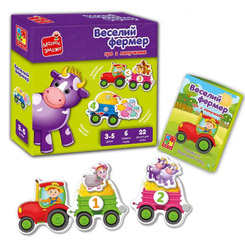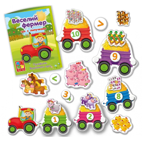 Познайомся з веселим фермером і його свійськими тваринками! Разом із ним малюк навчиться рахувати від 1 до 10 та у зворотному порядку, розв’язувати прості нерівності й розвивати важливі навички.