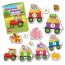 Гра проста та захоплива: потрібно кріпити фігурки тварин до кузовів за допомогою липучок, рахувати їхню кількість і підбирати відповідну цифру.