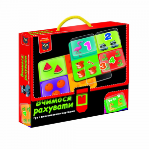 Навчальна гра для малюків 3-6 років. Яскраві зображення зі звірятками приховують математичні загадки: додавання, віднімання та рахунок. Гра розвиває логічне мислення, уважність і навички математики. У комплекті: 6 гральних полів, 24 пластикові картки та правила гри. Мова українська.