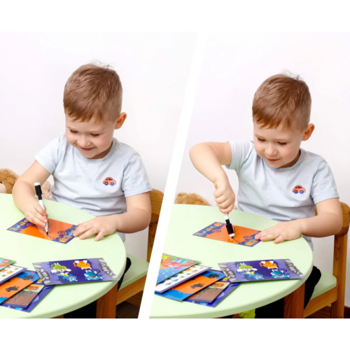Перетворіть навчання на гру! Обирайте картку, виконуйте завдання маркером, що легко стирається, і розвивайте увагу, логіку, інтелект і пам’ять.