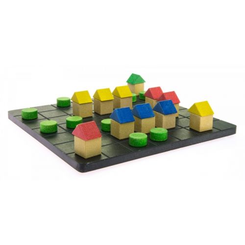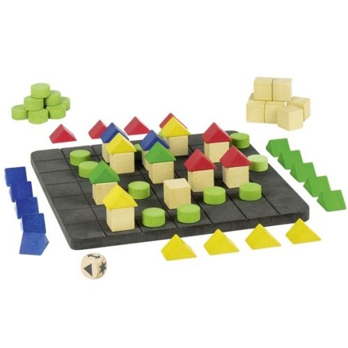 Настільна гра «План Б» німецького виробника іграшок goki сподобається не тільки дітям, але й дорослим. До складу набору входять: 22 кубики натурального кольору, 21 диск світло-зеленого кольору, по 7 трикутників червоного, жовтого, синього і зеленого кольорів, 1 гральний кубик, площина для будівництва та інструкція. Мета гри – першим збудувати 3 будинки однакового кольору. Настільна гра прослужить багато років, оскільки зроблена із дерева і практичного фірмового матеріалу, що складається із каменю, піску та кольорового пігменту. «План Б» розвиває логіку, стратегічне мислення і сприйняття кольору.