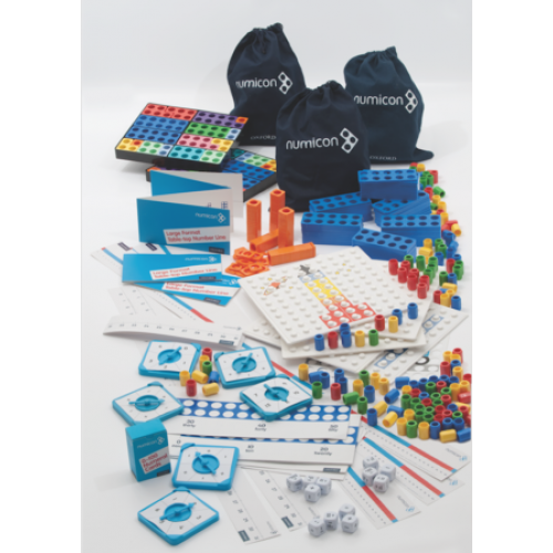 Набір складається з: 100 таблиць, тактильної сумки, великого формату настільної таблиці, лінійок, 80 кольорових трубочок, коробочки з 80 формами нумікон, числових накладок, накладок із зображеннями, 10 форм по 10, спінерів, кубиків, числових карток 1-100.