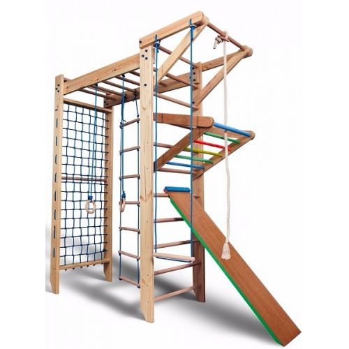 П-подібний дитячий куточок Sport 5 - це вдале рішення для батьків, які хвилюються про фізичний розвиток своїх дітей. Дитина зможе регулярно займатися спортом в домашніх умовах, виконувати зміцнюючі та розвиваючі вправи в ігровій формі, завдяки чому виробиться відмінна постава, зміцніють м'язи рук, ніг, спини і преса. Оснащений спорткомплекс різноманітними корисними і цікавими пристосуваннями.