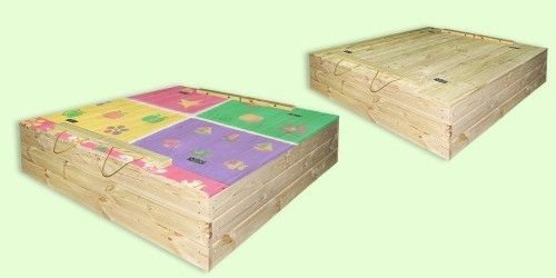 Пісочниця обладнана кришкою, яка в розкладеному вигляді трансформується в дві зручні лавки.