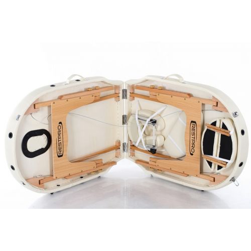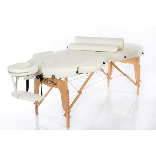 Масажний стіл RESTPRO OVAL – це складний 2-ох або 3-ох секційний дерев’яний стіл для масажу, виготовлений з буку. Оснащений простою та довговічною системою складання та розкладання, яка забезпечує трансформування столу у валізу, що є актуальним для фахівців, які виїжджають на дім.