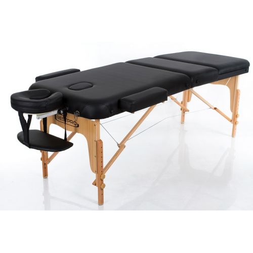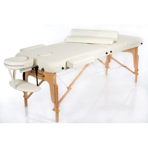 Масажний стіл RESTPRO VIP – це складний 2-ох, 3-ох або 4-ох секційний дерев’яний стіл для масажу, виготовлений з буку. Оснащений простою та довговічною системою складання та розкладання, яка забезпечує трансформування столу у валізу, що є актуальним для фахівців, які виїжджають на дім.
