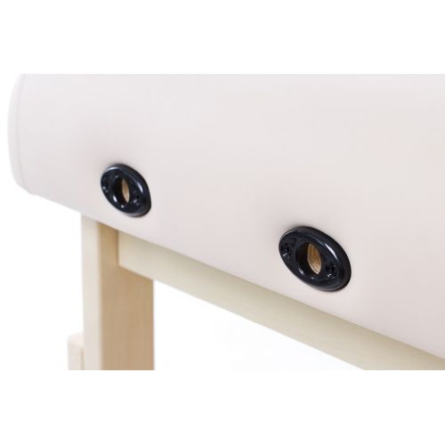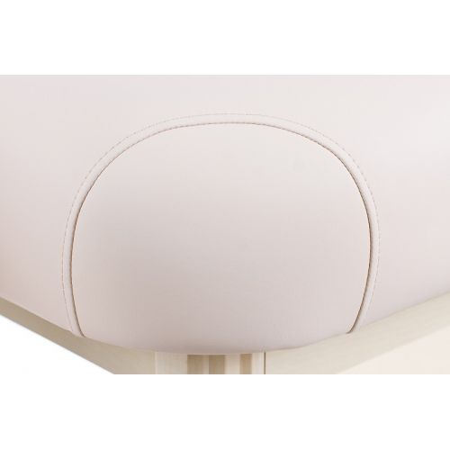 Для оббивки використовується приємний на дотик матеріал SkinTouch. Його поверхня гладка і пружна, текстура однорідна. Завдяки таким особливостям оббивний матеріал буде дуже легко очищати від залишків косметичних засобів. Покриття з еко-шкіри не липне до тіла, тому на ньому дуже комфортно лежати, навіть при великій тривалості процедури.