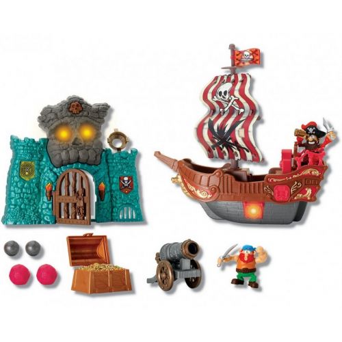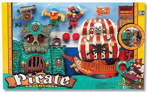 У наборі: корабель, пірати, гармата з ядрами, скриня скарбів тощо. Світлові і звукові ефекти.