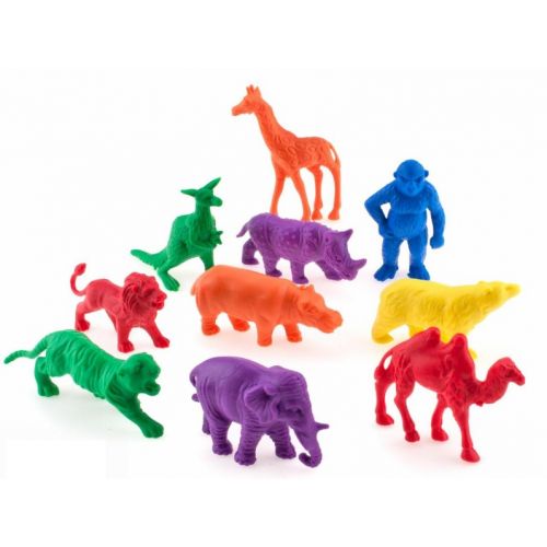 Виріб у вигляді яскравого набору з 10 диких тварин різного кольору: жирафи, горили, кенгуру, лева, тигра, ведмедя, верблюда, слона, носорога, бегемота. Фігурки м'які і приємні на дотик, їх можна сортувати, рахувати, розкладати. Іграшка розвиває моторику, мислення, пам'ять, увагу, фантазію.