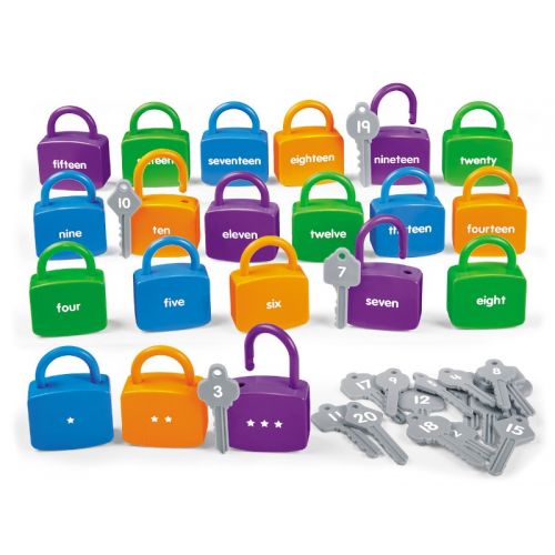 Виріб у вигляді яскравого набору з 20 різнокольорових замків з назвами і 20 ключів з цифрами. Гра розвиває логіку, уяву, мислення, пам'ять.