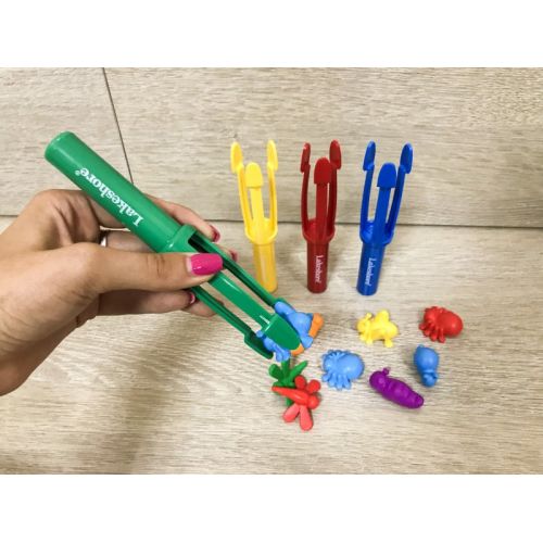 Виріб у вигляді яскравих щипців для гри. Гра розвиває дрібну моторику, зорову координацію, правильне захоплення предметів.