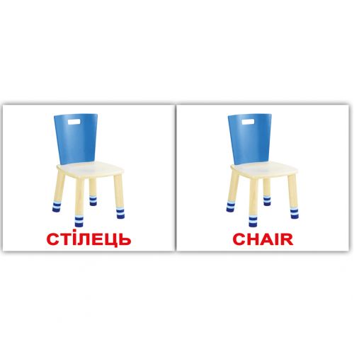 Набор 2-сторонних карточек с подписями на украинском и англ. языках, размером 8 см * 10см.