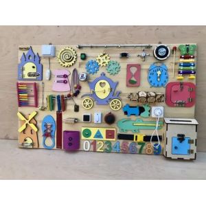 БизиБорд 100х60 см. замечательная развивающая игрушка по методике Марии Монтессори. 40 развивающих элементов сделают игру увлекательной и познавательной. Во время игры активно развивается мелкая моторика, координация движений, логика, а также внимательность.