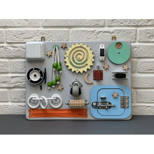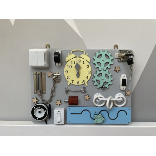 БизиБорд 40х30 замечательная развивающая игрушка по методике Марии Монтессори. 40 развивающих элементов сделают игру увлекательной и познавательной. Во время игры активно развивается мелкая моторика, координация движений, логика, а также внимательность.