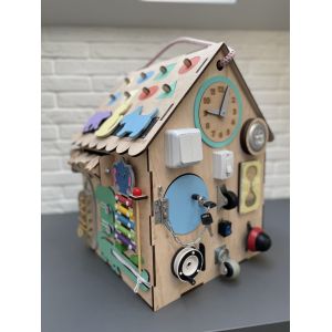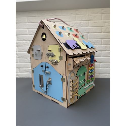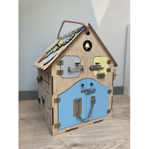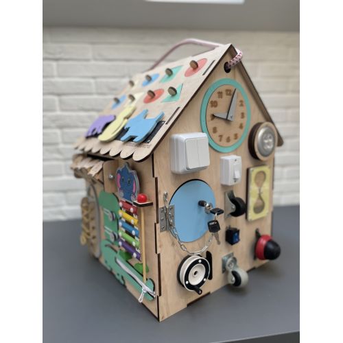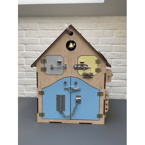 БизиДом 50х35х35 как настоящий дом с секретами, замечательная развивающая игрушка по методике Марри Монтессори. 34 развивающие элементы сделают игру увлекательной и познавательной. Во время игры активно развивается мелкая моторика, координация движений, логика, а также внимательность. Первая развивающая игрушка вашего ребенка, ведь подходит для детей от 8 месяцев до 5 лет, безусловно БизиДом будет любимой игрой.