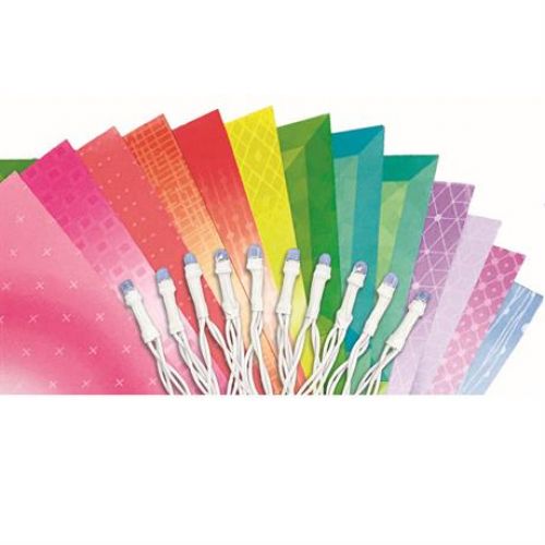 Изделие в виде яркого набора из разноцветных гирлянд из оригами, которые светятся.