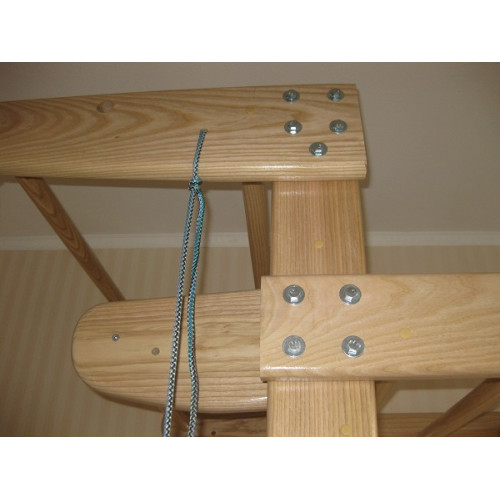 | Материал | боковины шведской стенки, рукохода, турника и каркас гладиаторской сетки - сосна/ясень; перекладины шведской стенки, рукохода, турника, веревочной лесенки и трапеции - бук; кольца выточены из прочной водостойкой фанеры; веревка в элементах веревочного наб |