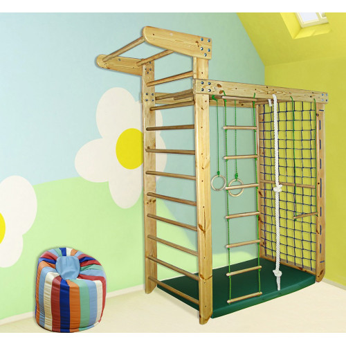 | Комплектация | шведская стенка с верхним турником; веревочный набор (кольца, канат, трапеция, веревочная лесенка); гладиаторская сетка; рукоход |