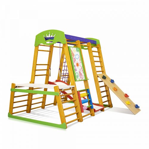 Многофункциональный спортивный уголок изготовлен из качественных, безопасных материалов. Соответствует европейским стандартам и требованиям ГОСТа. Не требует крепления, поэтому его можно перемещать по помещению. Занятия на этом спортивном уголке будут способствовать укреплению всех групп мышц, развитию вестибулярного аппарата, профилактики заболеваний центральной нервной системы, умственного развития и оздоровления организма в целом. Игровые элементы - мольберт и счеты привлекут внимание ребенка иразовьют его творческие и математические способности. Комплекс предназначен для игровых комнат, спортзалов, классов ЛФК, оздоровительных и развлекательных центров или для дома.