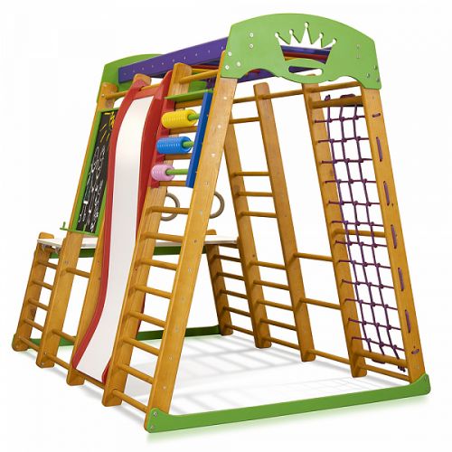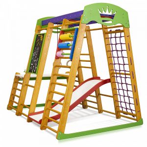 Многофункциональный спортивный уголок изготовлен из качественных, безопасных материалов. Соответствует европейским стандартам и требованиям ГОСТа. Не требует крепления, поэтому его можно перемещать по помещению. Занятия на этом спортивном уголке будут способствовать укреплению всех групп мышц, развитию вестибулярного аппарата, профилактики заболеваний центральной нервной системы, умственного развития и оздоровления организма в целом. Игровые элементы - мольберт и счеты привлекут внимание ребенка иразовьют его творческие и математические способности. Комплекс предназначен для игровых комнат, спортзалов, классов ЛФК, оздоровительных и развлекательных центров или для дома.