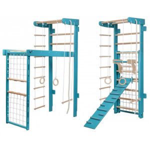 | Материал | боковины: шведская стенка, рукоход, гладиаторская сетка, турник - сосна перекладины: шведская стенка, рукоход, турники, веревочная лесенка и трапеция - ясень/бук/граб кольца выточены из прочной водостойкой фанеры веревка в элементах веревочного набора и с |