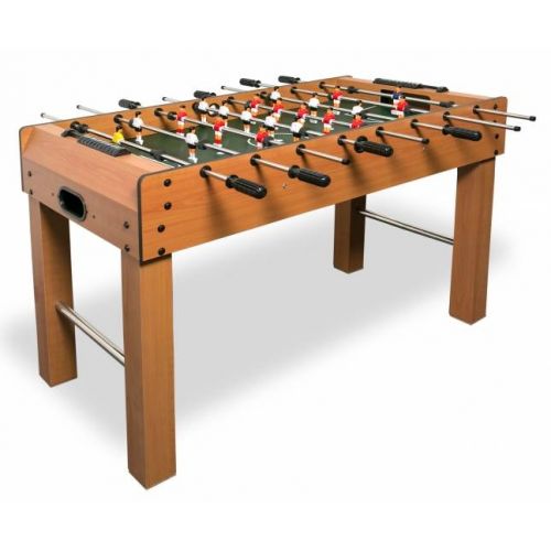 Изделие состоит из игрового поля и крепкого каркаса, устойчивого к повреждениям и нагрузкам. Настольный футбол на крепких ножках, с каучуковыми ручками для удобства, металлическими элементами, фигурками.