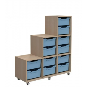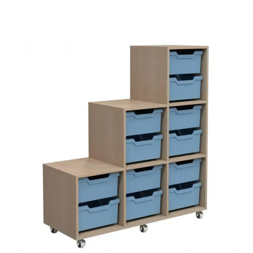 Мобильный стеллаж с комплектом лотков – удобное и функциональное решение для хранения. Выполнен в цвете "Дуб молочный" из крепкого ДСП толщиной 16 мм. Благодаря компактным габаритам (1040×400×1178 мм) и продуманной конструкции подходит для организации пространства. Вес изделия – 26,15 кг. Легко перемещается благодаря колесам.