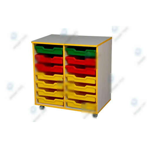 Используется в садах или школах для хранения книг, дидактического материала, папок или детских личных вещей.