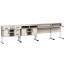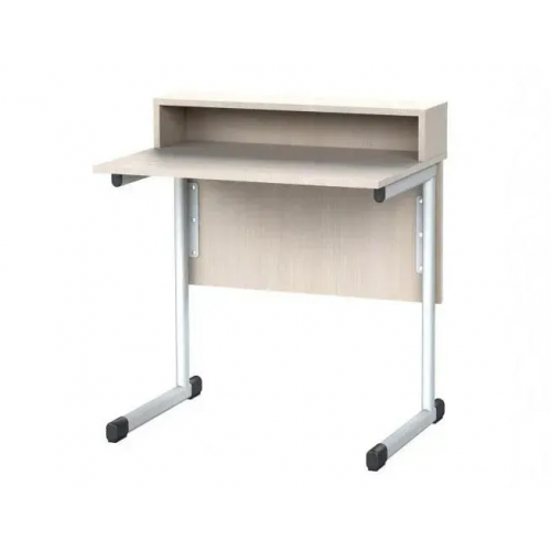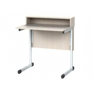 Стол-помощник для кабинета физики и химии состоит из столешницы, экрана и полки, соединенных металлическими каркасами. Деревянные элементы стола изготовлены из ламинированной ДСП толщиной 18 мм, оклеены кромочной ПВХ лентой для большей прочности. Металлические части изготовлены из плоскоовальных труб разных размеров и покрыты порошковой эмалью для защиты от повреждений. Наконечники из пластика на торцах каркаса обеспечивают безопасность учащихся и пола, предотвращая травмы и повреждения.