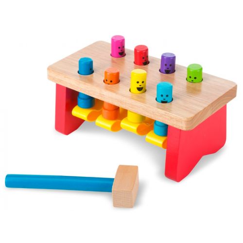 С этой деревянной стучалкой Ваш малыш будет весело проводить время. Ударяя молоточком по колышкам, которые находятся на скамеечках, они поднимаются вверх и опускаются вниз, при этом показывая свои улыбки. Игрушка развивает координацию движений, внимание, точность, моторику ручек и пальчиков.