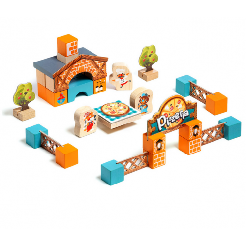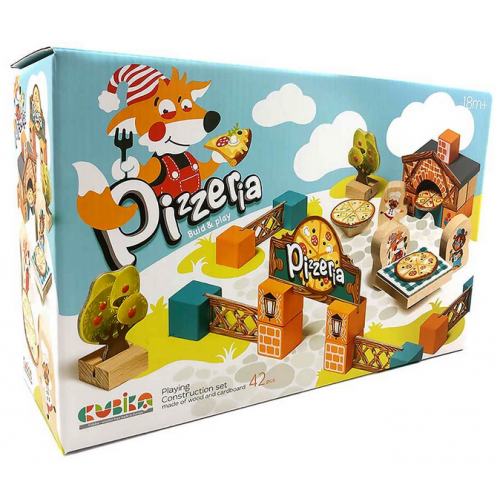 Изделие в виде набора из 42 ярких блоков, которые складываются в пиццерию.