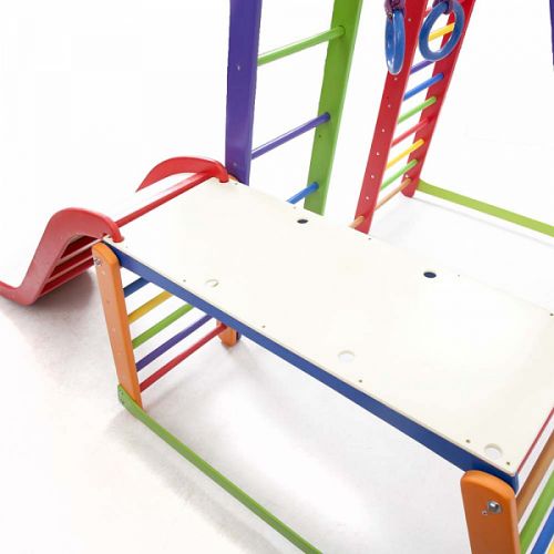 1. Шведская стенка. 2. Гладиаторская сетка. 3. Рукоход 4. Детская горка Волна 5. Кольца. 6. Стол-пристройка к детскому спорт уголку |