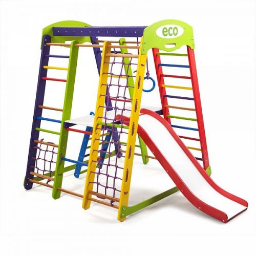 Детский спортивный комплекс оснащён всеми игровыми элементами и спортивными атрибутами, необходимыми для полноценного развития ребёнка.