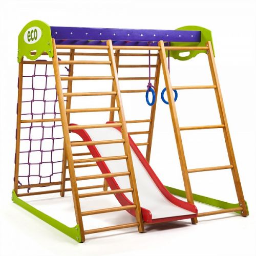 Детский спортивный комплекс оснащён всеми игровыми элементами и спортивными атрибутами, необходимыми для полноценного развития ребёнка.