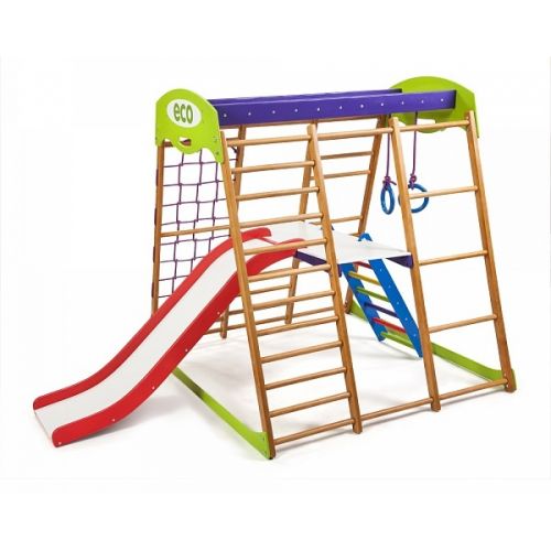 Детский спортивный комплекс оснащён всеми игровыми элементами и спортивными атрибутами, необходимыми для полноценного развития ребёнка.