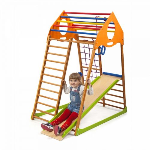 Лёгкий, компактный и многофункциональный спортивный комплекс KindWood не требует дополнительной фиксации и прекрасно поместится даже в малогабаритной квартире, а его нейтральная расцветка позволит использовать его как для девочек, так и для мальчиков, и подойдёт для любого интерьера.