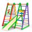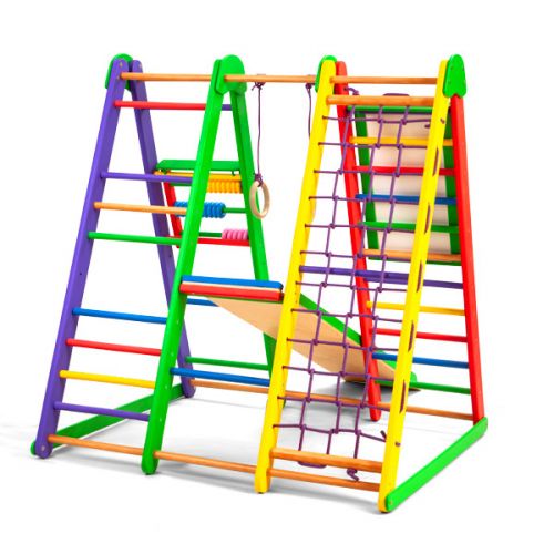 Многофункциональный спортивный уголок изготовлен из качественных, безопасных материалов. Соответствует европейским стандартам и требованиям ГОСТа. Не требует крепления, поэтому его можно перемещать по помещению. Занятия на этом спортивном уголке будут способствовать укреплению всех групп мышц, развитию вестибулярного аппарата, профилактики заболеваний центральной нервной системы, умственного развития и оздоровления организма в целом.