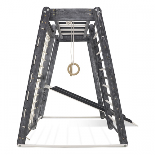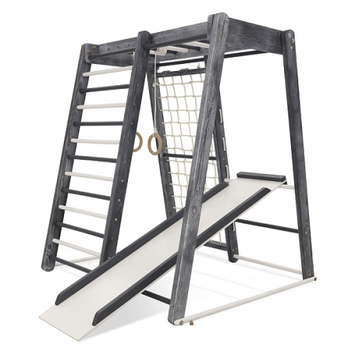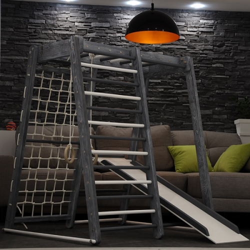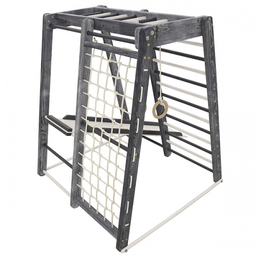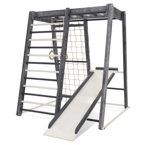 Занимаясь на таком спортивном уголке, ребенок тренирует все группы мышц, получает норму ежедневной физической нагрузки и оздоравливается в целом. Также модель способствует профилактике заболеваний центральной нервной системы и развитию вестибулярного аппарата.