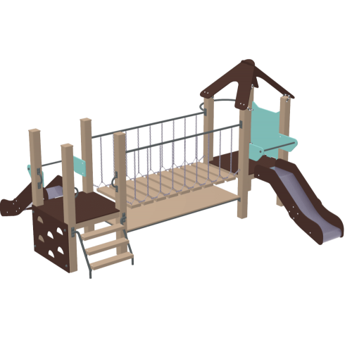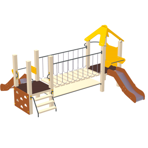 1. Две горки 2. Переходный мостик на цепи 3. Две стремянки разного типа 4. Лазалка щит |