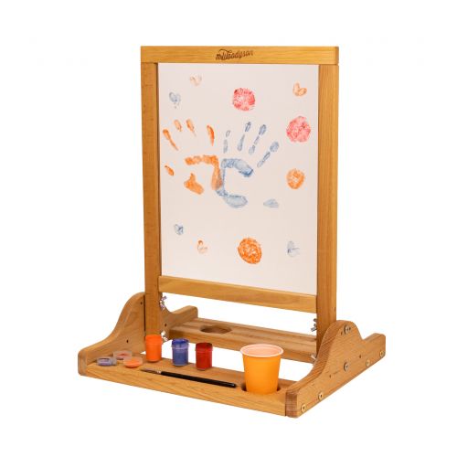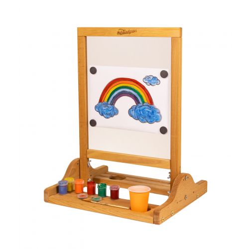 Двусторонняя доска-мольберт Оптимус изготовлена из высококачественного дерева - бука, сертифицирована и соответствует нормам ГОСТ. Доска является абсолютно безопасной и обязательно понравится Вашему малышу.