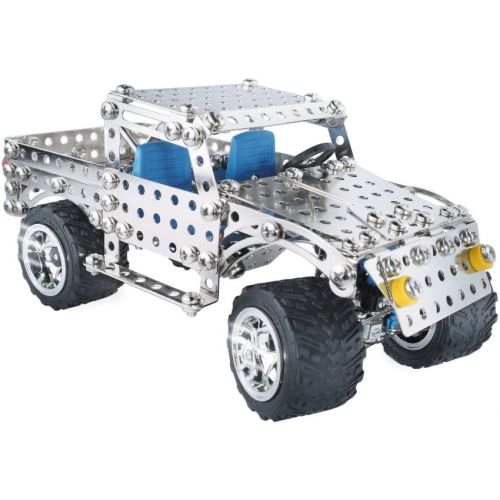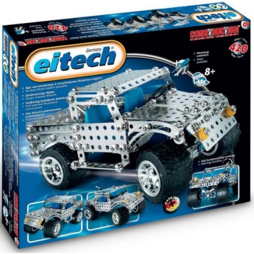 Металлический конструктор Eitech — отличный подарок для детей, которые любят мастерить и собирать различные механизмы. С помощью этого набора Ваш ребенок сможет смастерить две модели джипа, которые будут ездить, как настоящие, а с помощью руля поворачивать колеса. Все детали конструктора Eitech изготовлены в Германии из высококачественного металла и пластмассы, они не имеют острых углов и краев. Модели, которые собрал Ваш малыш будут держаться очень крепко, даже если вы их случайно уроните. Все детали этого конструктора совместимы с деталями конструкторов Eitech, поэтому из нескольких наборов можно собрать сложные и интересные конструкции. В набор входят инструменты (гаечные ключи и отвертки), подробная иллюстрированная инструкция.
