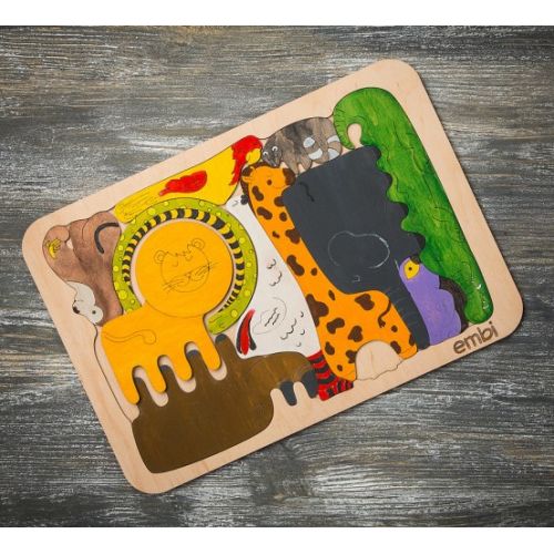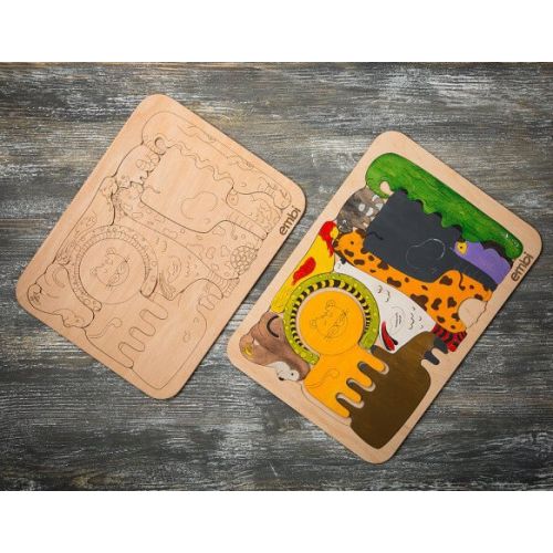 Изделие в виде пазлов разных диких животных. Пазлы можно раскрасить в разные цвета. Развивает моторику, воображение и память.