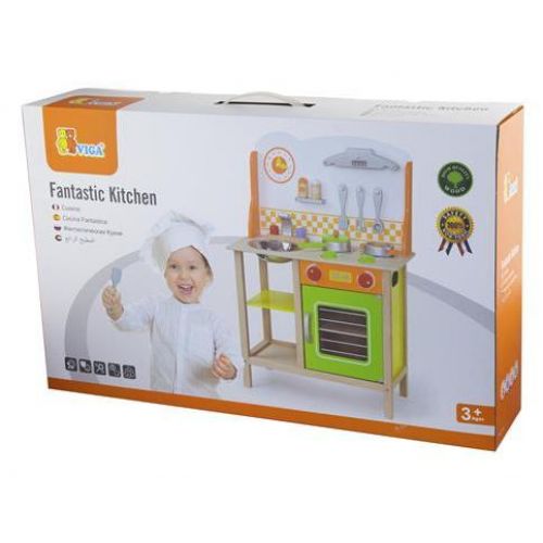 На этой яркой и веселой кухне приготовление еды становится настоящим удовольствием. Набор включает плиту, духовку, раковину, кухонную вытяжку и часы. Также здесь есть все необходимы аксессуары для работы маленького повара - ложка, два вида кухонных лопаток, две емкости для специй, сковорода и кастрюля с крышкой.