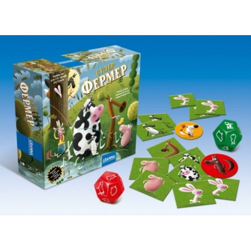 Изделие в виде настольной дорожной версии игры Суперфермер. С отсутствием игровых полей, увеличением игроков до 6, таблицами обмена животных на боках коробки, собаками на карточках. Игра развивает логику, воображение, мышление.