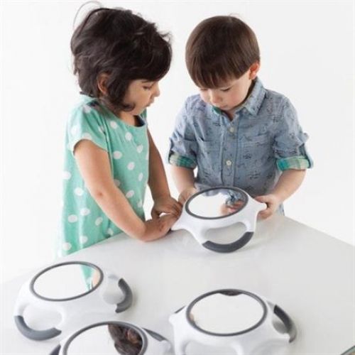 Изделие в виде набора из 4 зеркал круглой формы диаметром 20 см. С тремя мягкими ручками, уникальным дизайном. Для обучения эмоциям и стимулирования сенсорики.