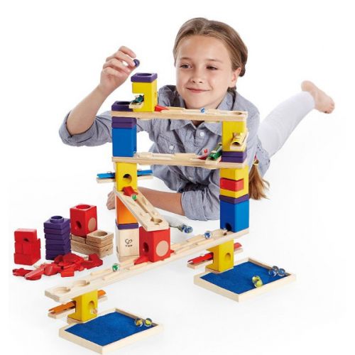 Изделие состоит из различных цветных блоков, трасс и шариков для строительства скоростной конструкции. Есть много вариантов построения лабиринтов. С металлическими элементами ксилофона. Шарики пробегают и создают красивую мелодию.